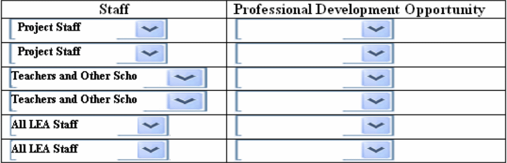 For example, in Formula Grant EASIE a data element (complete with drop down tables) might appear similarly to Example 1 in the application online.