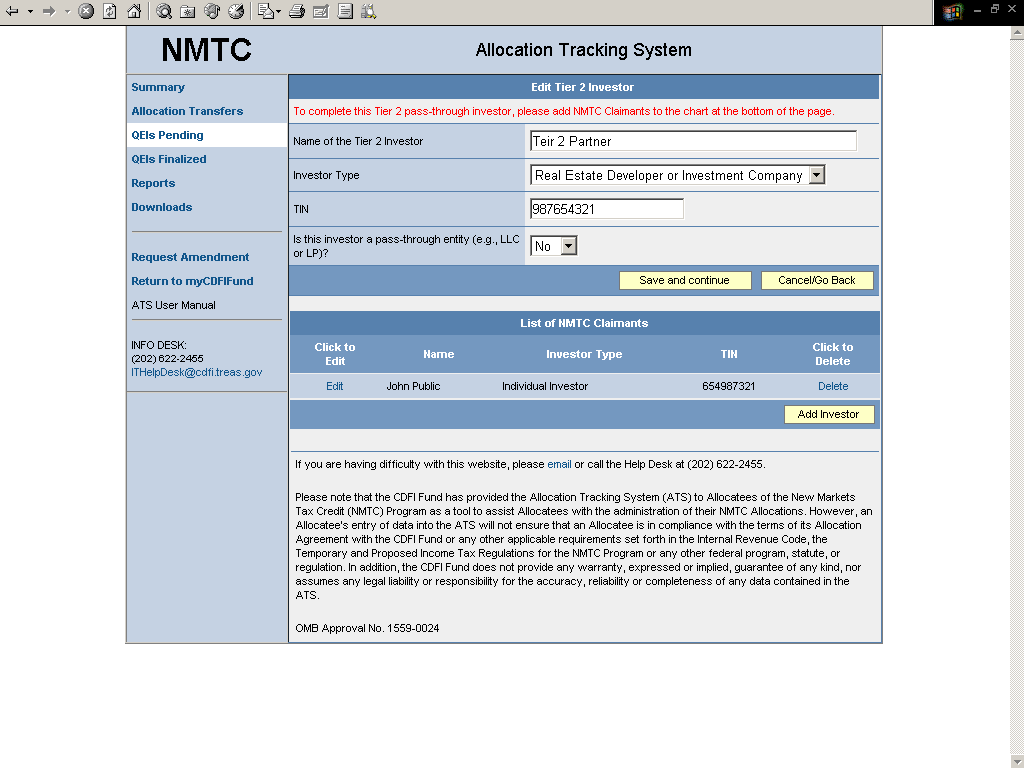 New Markets Tax Credit (NMTC) Program Allocation Tracking System (ATS)