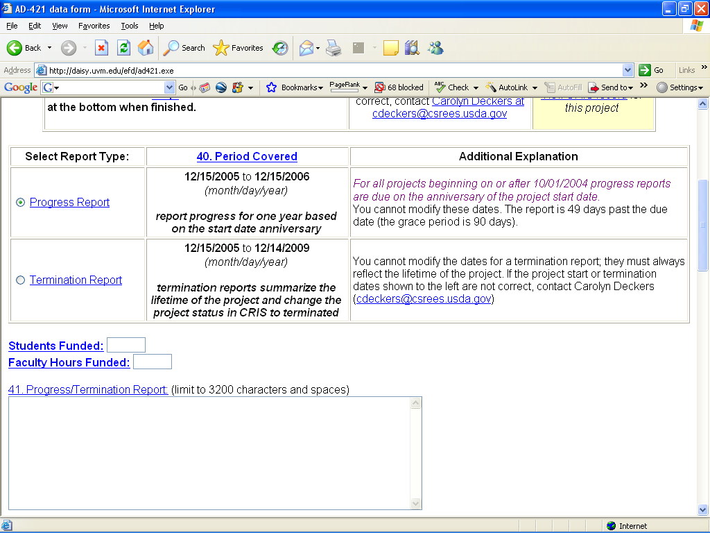 According to the Paperwork Reduction Act of 1995, an agency may not conduct or sponsor, and a person is not required to respond to, a collection of information unless it displays a valid OMB control number. The valid OMB control number for this information collection is OMB-0524-0042 . The time required to complete this information collection is estimated to average 162 minutes per response, including the time for reviewing instructions, searching existing data sources, gathering and maintaining the data needed, and completing and reviewing the collection of information.