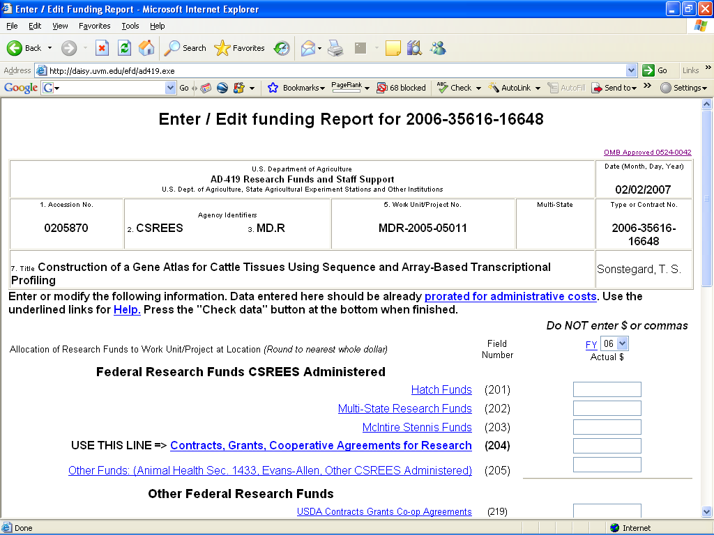 According to the Paperwork Reduction Act of 1995, an agency may not conduct or sponsor, and a person is not required to respond to, a collection of information unless it displays a valid OMB control number. The valid OMB control number for this information collection is OMB-0524-0042 . The time required to complete this information collection is estimated to average 84 minutes per response, including the time for reviewing instructions, searching existing data sources, gathering and maintaining the data needed, and completing and reviewing the collection of information.