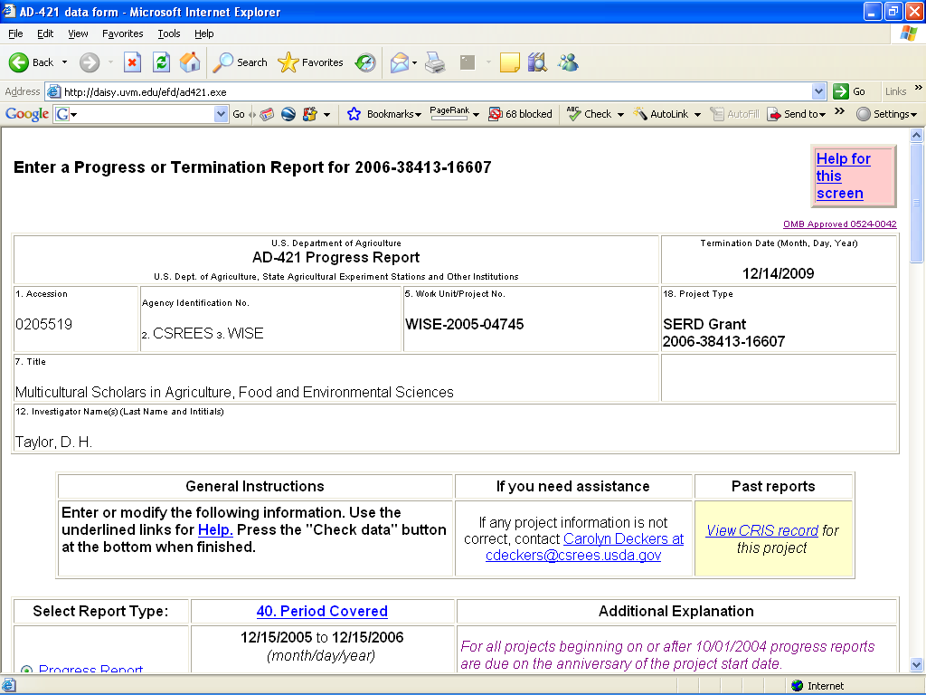 According to the Paperwork Reduction Act of 1995, an agency may not conduct or sponsor, and a person is not required to respond to, a collection of information unless it displays a valid OMB control number. The valid OMB control number for this information collection is OMB-0524-0042 . The time required to complete this information collection is estimated to average 162 minutes per response, including the time for reviewing instructions, searching existing data sources, gathering and maintaining the data needed, and completing and reviewing the collection of information.