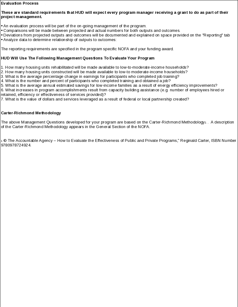HUD Goals Policy Priority Problem, Need, Situation Service or Activities/Output Pre Post Outcome Pre Post Evaluation Tools