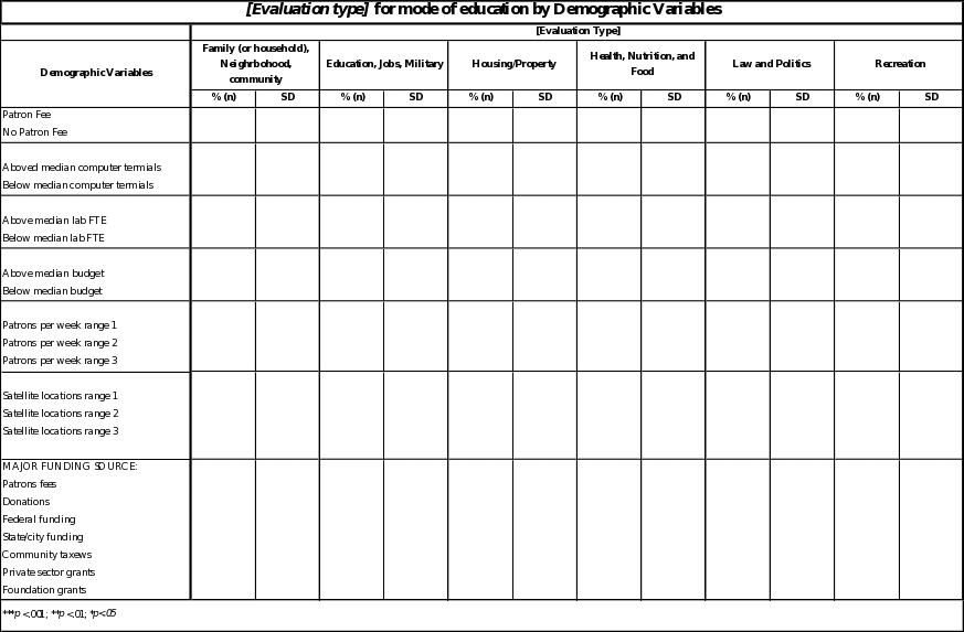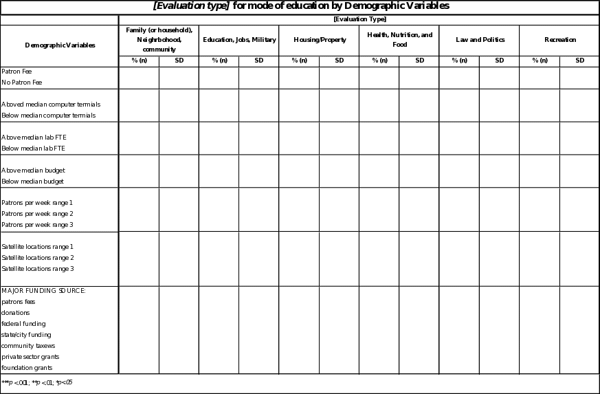 In compliance with section 5.1 of the code, the analysis plan for the public access computing center/public library survey is to determine the frequency and scope of training, and depth and frequency of program evaluations available within the U.S. Significant geographic differences in regard to frequency and scope of training and evaluation throughout the U.S. will also be reported.