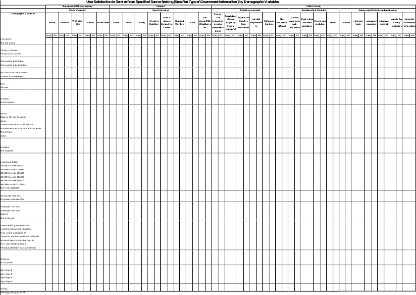 The purpose of the national telephone survey is to provide information about users, access, and uses of government information at the federal, state, and local level. These measures will collectively describe the user needs and be used to evaluate whether or not these needs are being met by public access computing centers, public libraries, and trainers of instructors. The research being conducted is exploratory in nature and is groundbreaking in its investigation of user satisfaction with access to government information on a national scale.