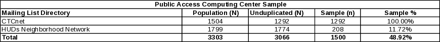 Table 6—Public Access Computing Center and Library Sampling Frame