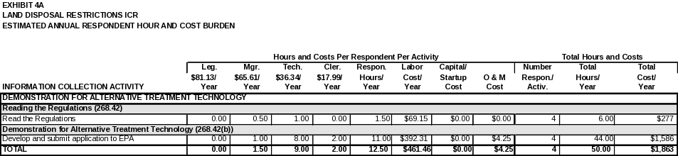 Based on its best judgment, EPA estimates that, each year, four facilities will seek a variance from a specified treatment method. These facilities are expected to read the regulations at 40 CFR 268.42. In addition, these facilities are expected to prepare and submit a demonstration and any other information requested by EPA.