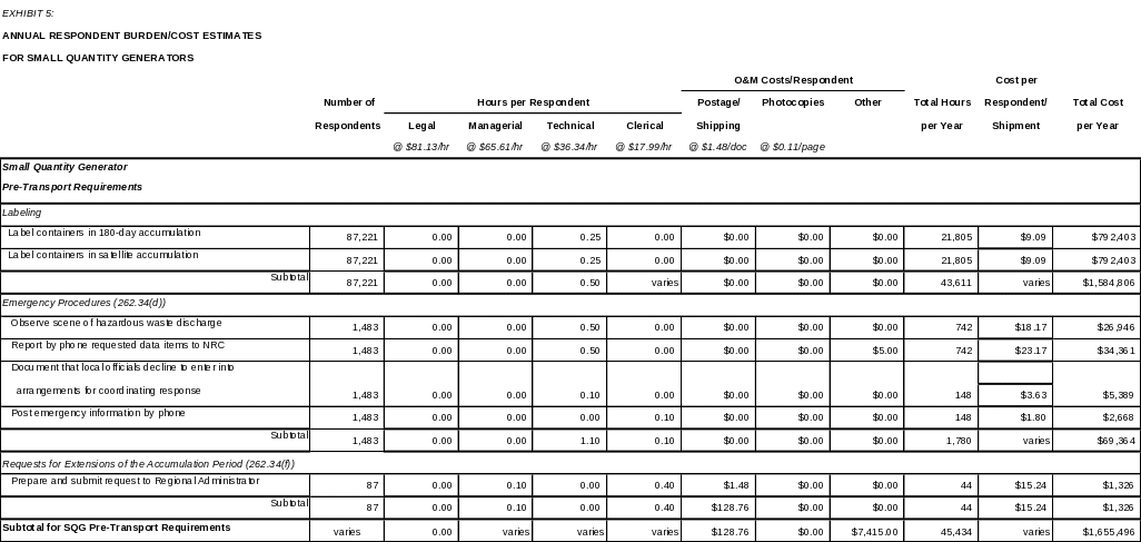 SMALL QUANTITY GENERATOR PRE-TRANSPORT REQUIREMENTS (Exhibit 5)