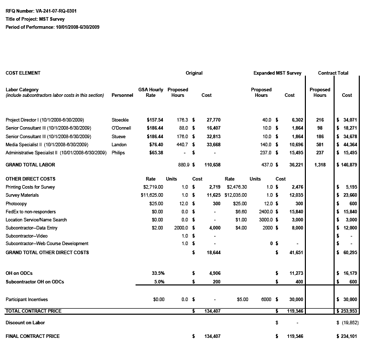 14. Provide estimates of annual cost to the Federal Government. Also, provide a description of the method used to estimate cost, which should include quantification of hours, operation expenses (such as equipment, overhead, printing, and support staff), and any other expense that would not have been incurred without this collection of information. Agencies also may aggregate cost estimates from Items 12, 13, and 14 in a single table.