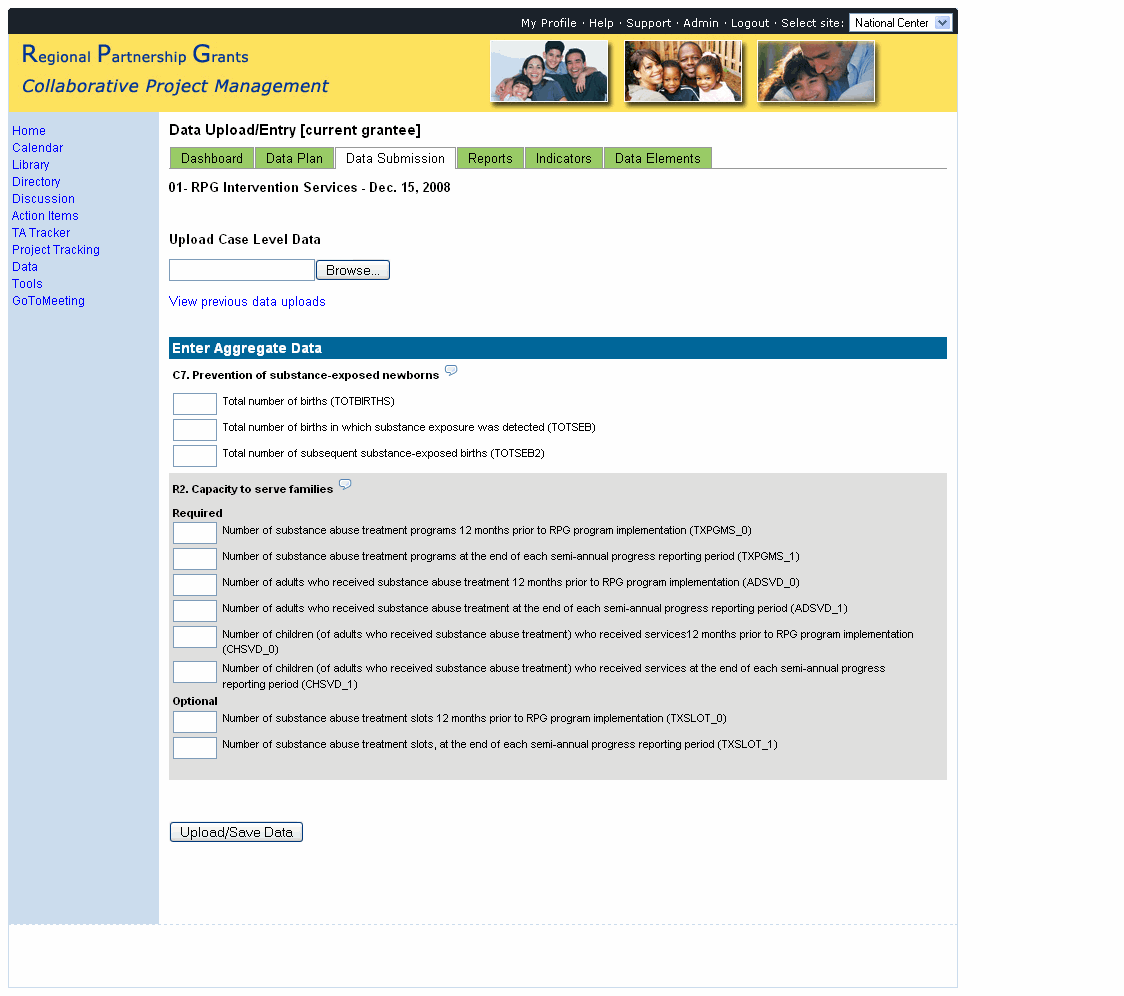 This correspondence is to instruct you on the process for submitting performance indicator data to the RPG Data System through the Collaborative Project Management (CPM) web portal. A web-based RPG Data Collection and Reporting System (the RPG Data System) has been developed to 1) collect and store indicator data on specific children, adults and families; 2) provide a standardized format to report and process data; and 3) provide a format and reporting system for grantees’ Semi-Annual Progress Report information on activities and progress toward goal achievement. Overall, the RPG Data System will provide the data for analysis by the RPG Support Contract (RPG SC) Project Team to generate the indicator data reports and assessment of RPGs’ performance that will be used by the Administration for Children and Families to report to Congress.