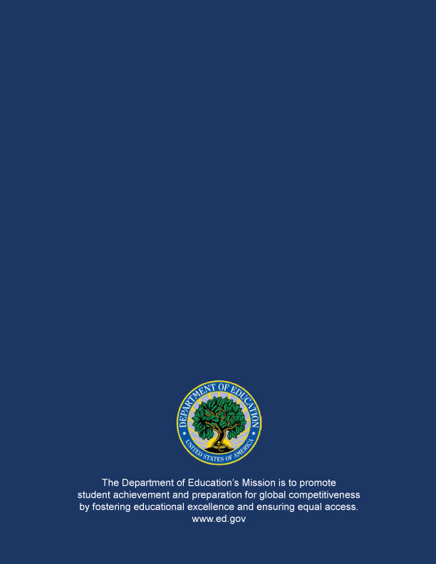 This report was prepared for the U.S. Department of Education under Contract number ED-04-CO-0040 Task 0006 with SRI International. Bernadette Adams Yates served as the project manager. The views expressed herein do not necessarily represent the positions or policies of the Department of Education. No official endorsement by the U.S. Department of Education is intended or should be inferred.