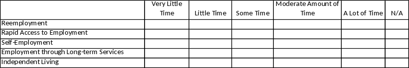 Estimate the percentage of your time spent, per week, working on each of the tasks below. (Use only time spent on VR&E work. Percentages should add to 100%)