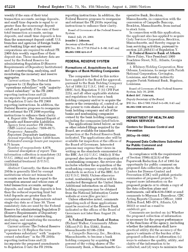 60-DAY FEDERAL REGISTER NOTICE TO THE PUBLIC