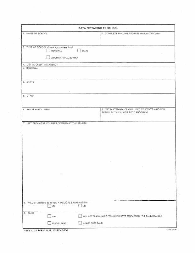Form DA Form 3126 DA Form 3126 Application and Contract for Establishment of a Junior R
