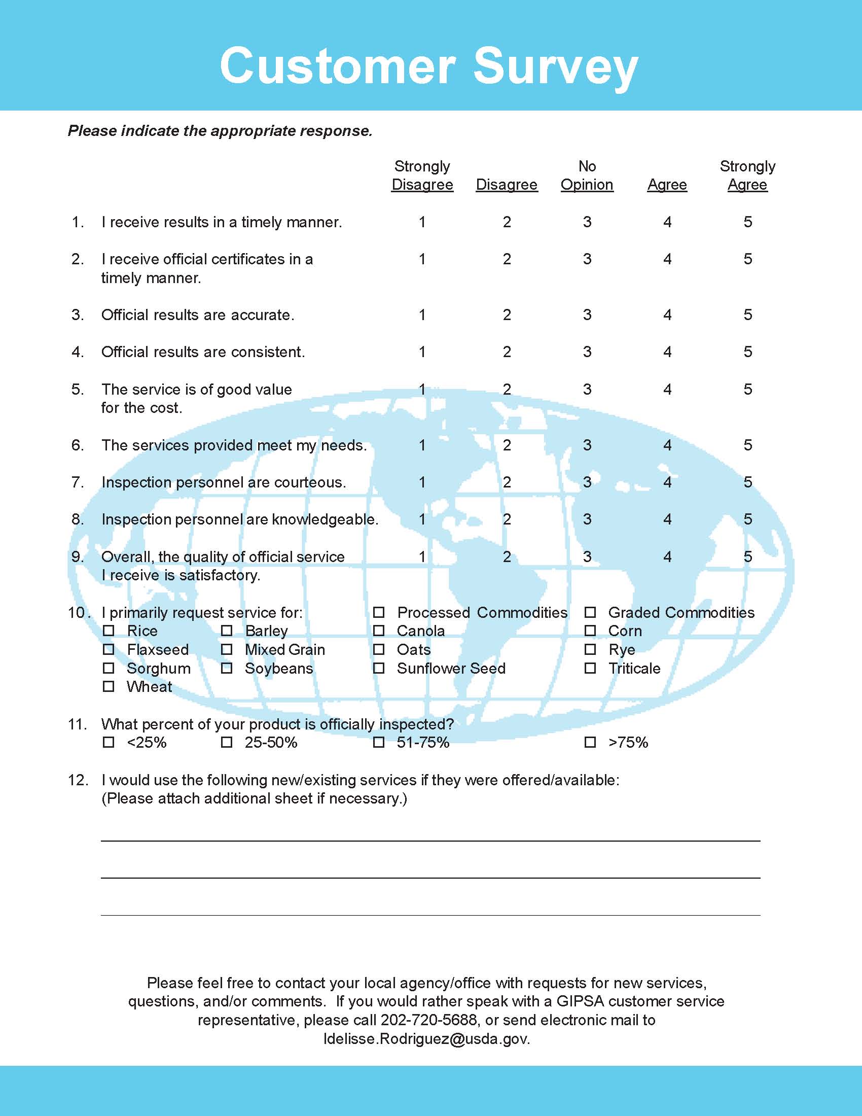 Again for the 2007 survey, FGIS built a new customer database with updated information provided by each official private and State agency, and FGIS offices. For the sake of time and cost-efficiency, FGIS sent surveys to a statistically representative sample of the program’s entire population of 9,459 customers. For agencies and field offices with 20 or more customers, FGIS sent surveys to 20 randomly selected customers. For those with fewer than 20 customers, FGIS sent surveys to each of their customers. In total, FGIS mailed out 1018 surveys and achieved a 52% response rate. Responses were received from customers of all 43 private official agencies, 12 State agencies and 5 FGIS offices.