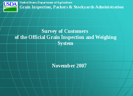 The true quality and value of any service is best measured by the customer. The official grain inspection and weighing system has long relied on customer input to better understand their needs and the system’s performance. The official system is a unique public/private network comprised of the Grain Inspection, Packers and Stockyards Administration’s Federal Grain Inspection Service (FGIS) and the private and State agencies that FGIS oversees. The system provides impartial inspection and weighing services for grain, oilseeds, and related products. In FY 2007, the official system provided over 3 million inspections on over 294.2 million metric tons of America’s grain.