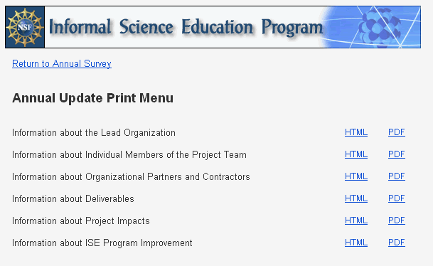 Informal Science Education - Annual Update (PIs - Research, Pathways, CRPA)