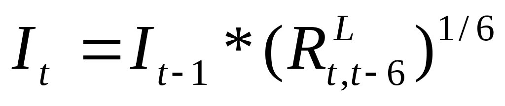 The final Rent and OER indexes for month, t, for each market basket are last month's index times the sixth root of the six-month relative.