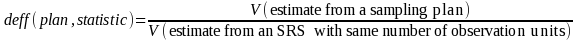 The design effect, deff, for a stratified sample over an SRS can be shown by4