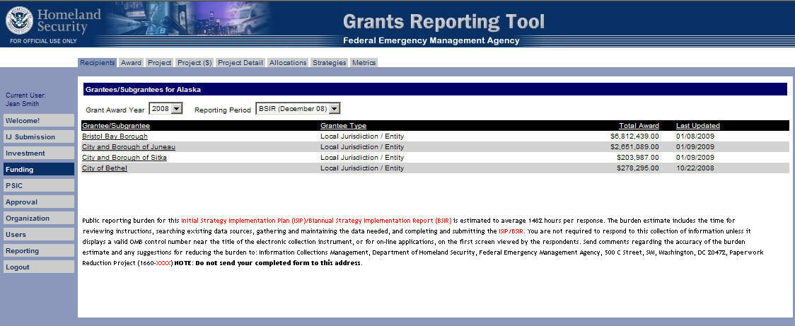 Submission Funding Module – Recipients Tab – F