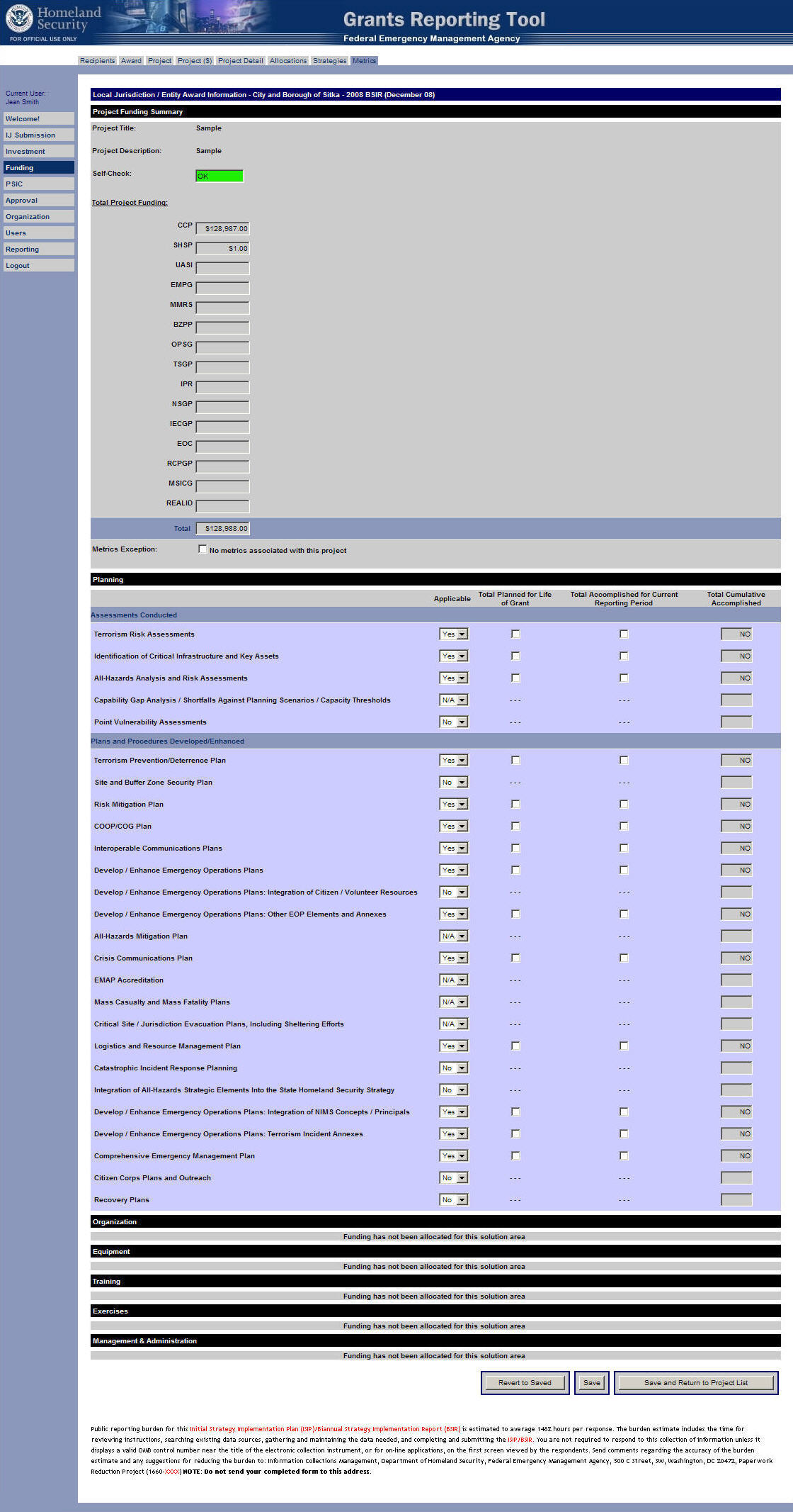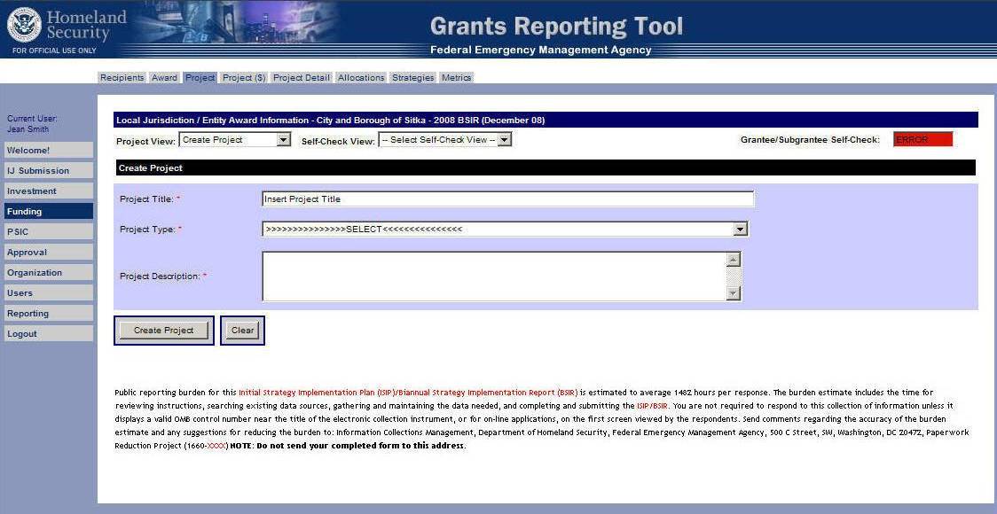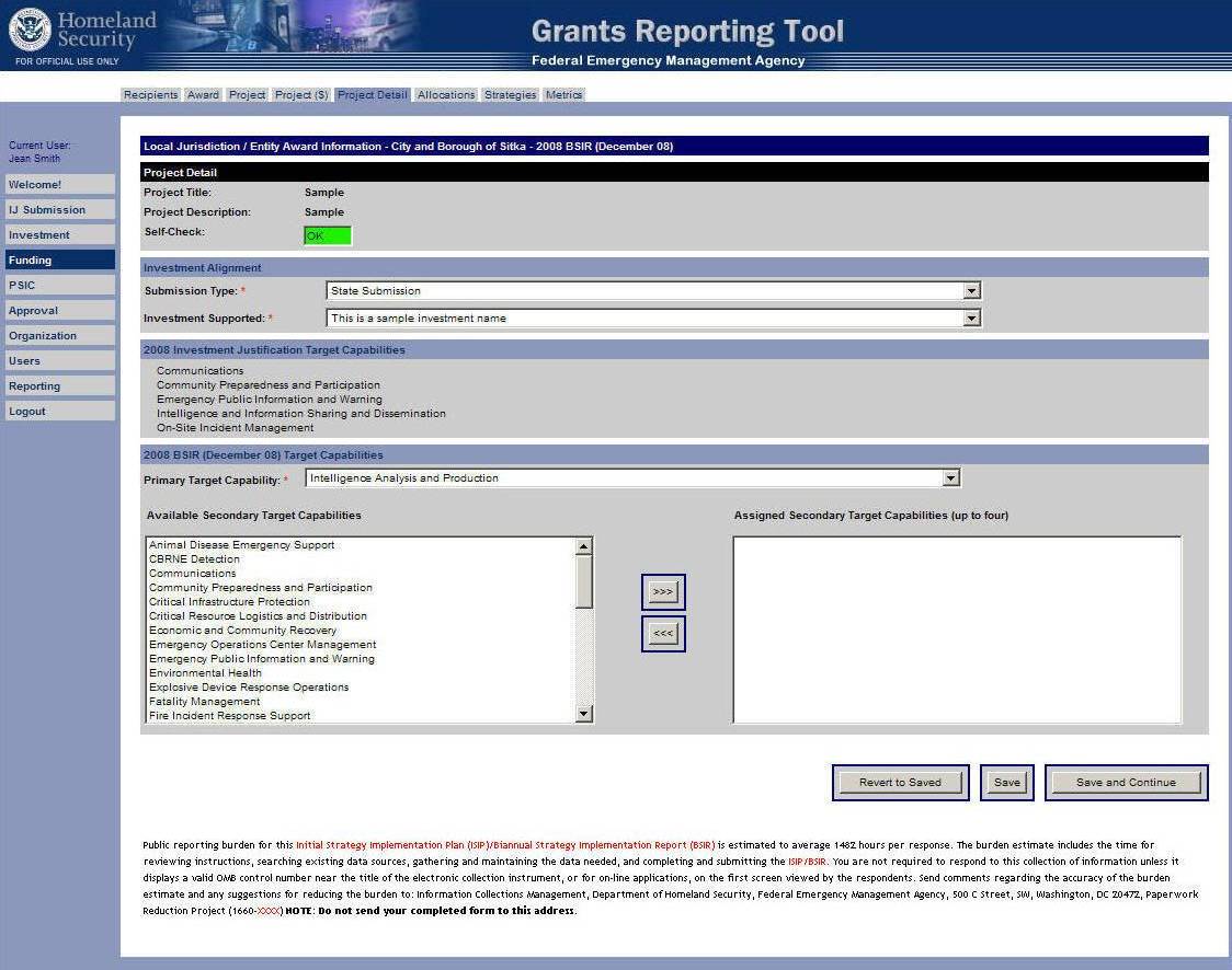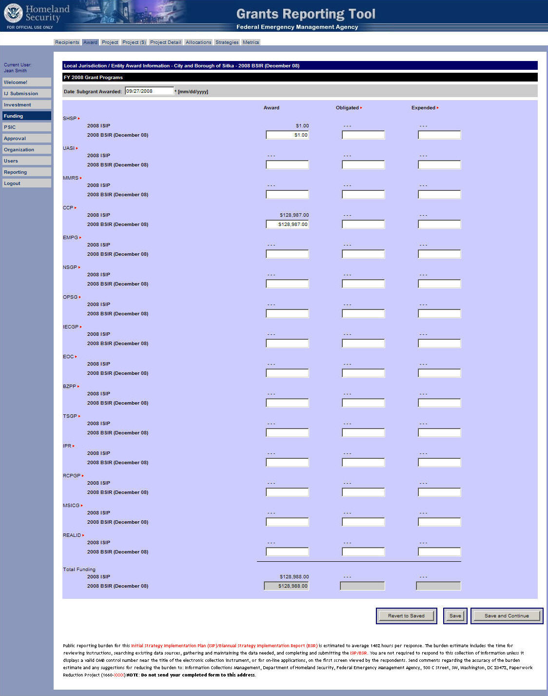 BSIR Submission Funding Module – Recipients Tab – F irst Screen