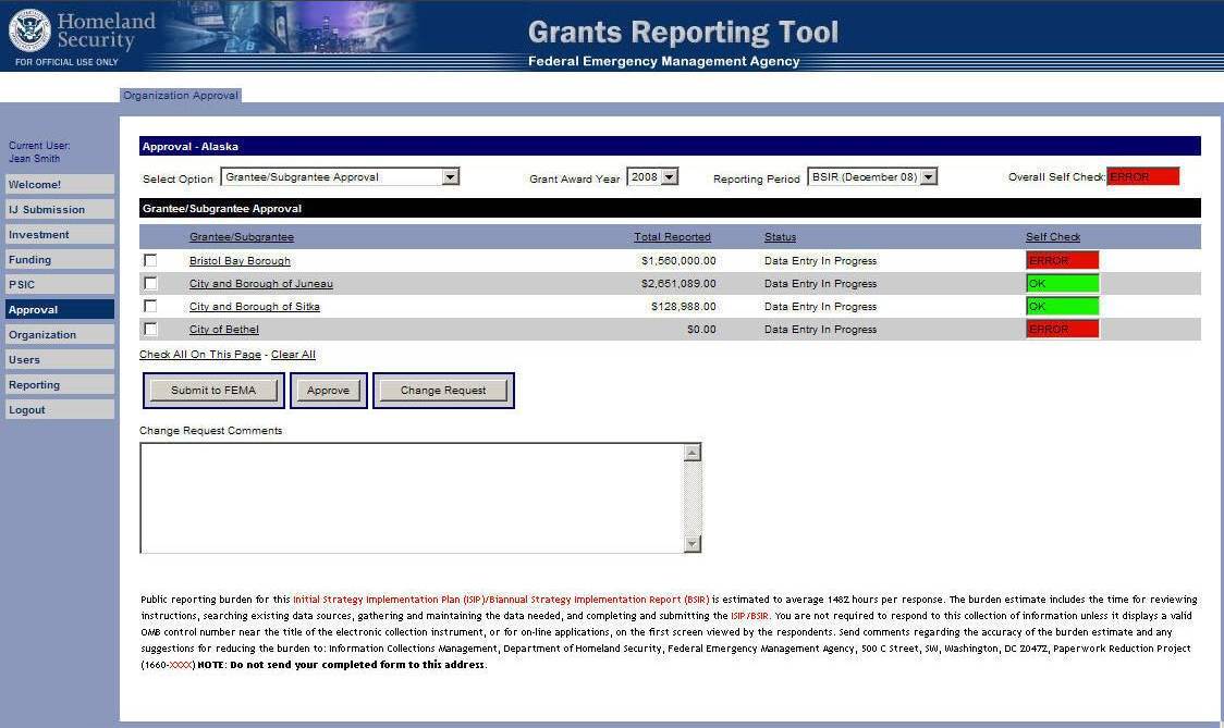 BSIR Submission Funding Module – Recipients Tab – F irst Screen