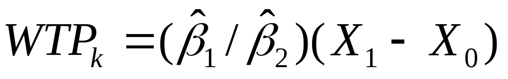 where k refers to the kth element of the X and 1 vectors. They will also be used to estimate the average WTP for acquiring the combination of attributes associated with one program (X1) compared to the attributes of another program (e.g., the no action alternative) (X0):