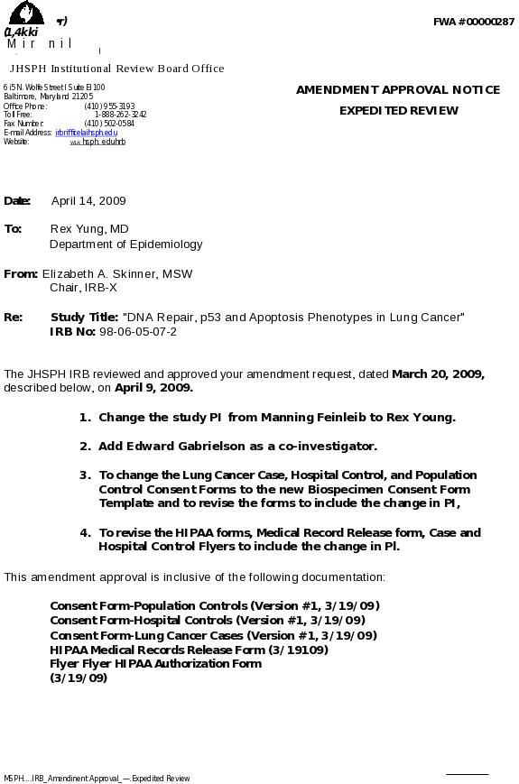 Attachment #3C: JHU-IRB Protocol Approval: Lung Case-Control Protocol