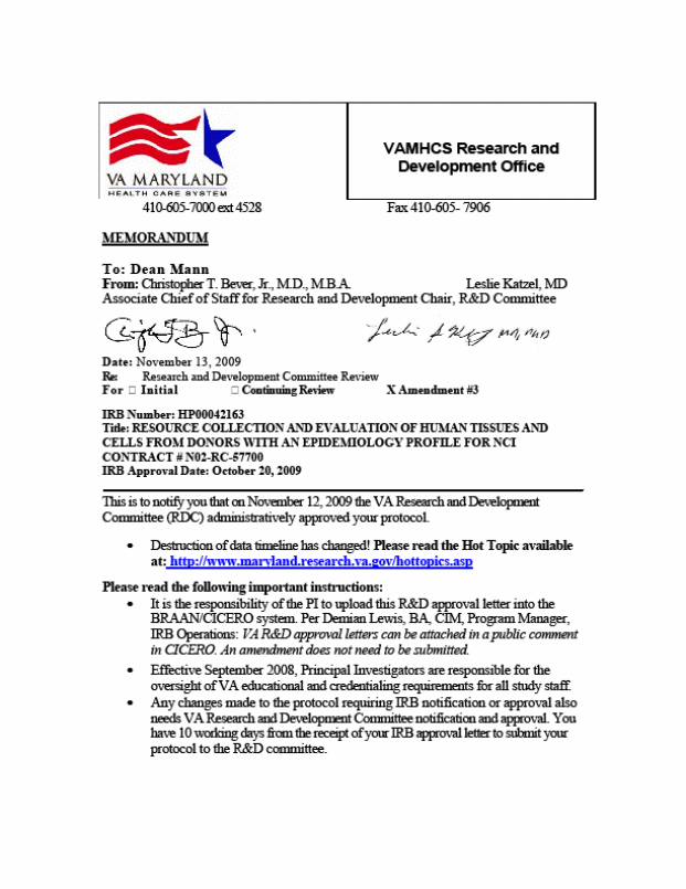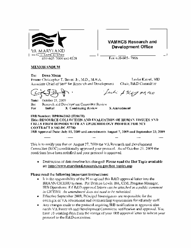 Attachment #3H: Baltimore Veteran’s Admin – IRB approval