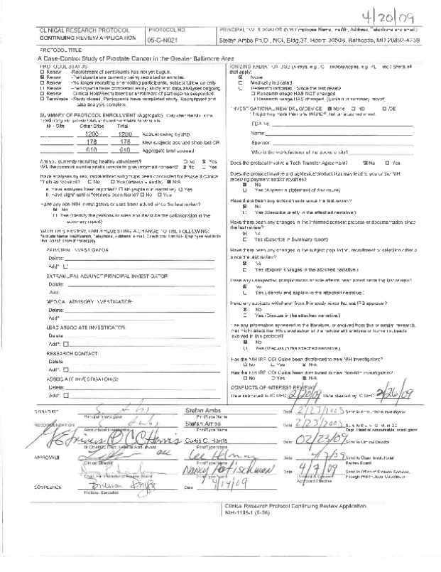 #3E: UMD-IRB Approval: Prostate Case-Control Protocol