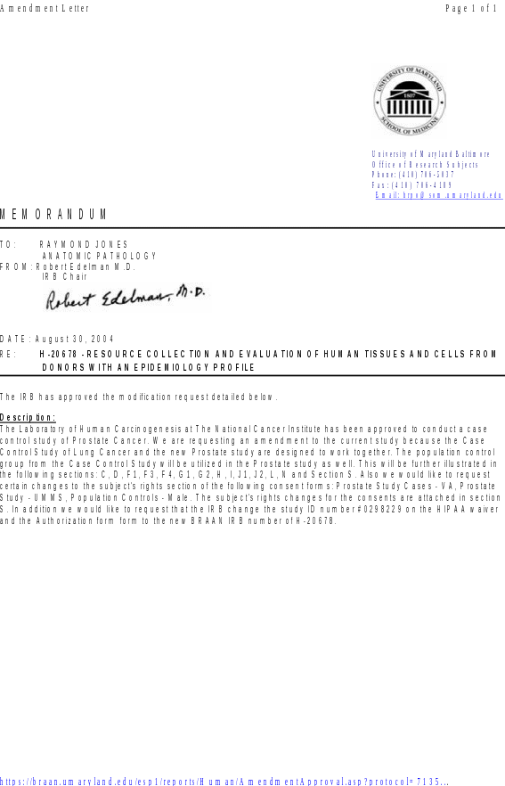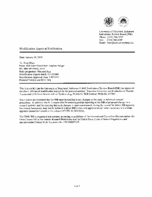 Attachment #3G: UMD-IRB Approval: Liver Case-Control Protocol