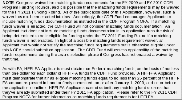 HFFI-FA Award Amount and Matching Funds