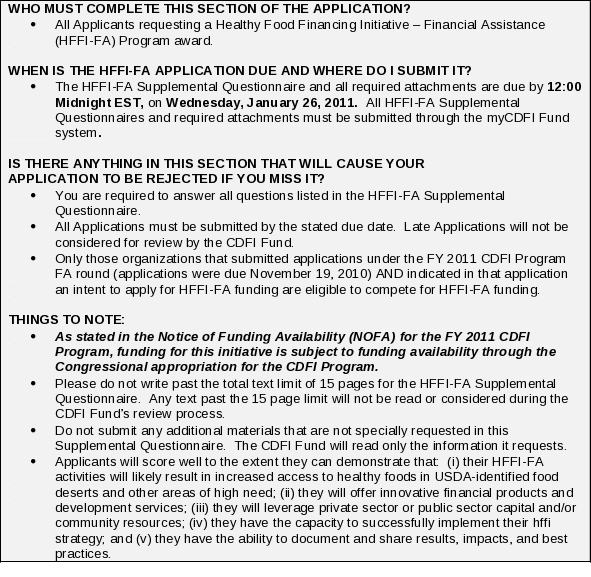 | File Title | HEALTHY FOOD FINANCING INITIATIVE SUPPLEMENTAL QUESTIONNAIRE: FINANCIAL ASSISTANCE REQUEST |