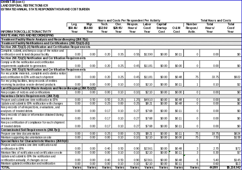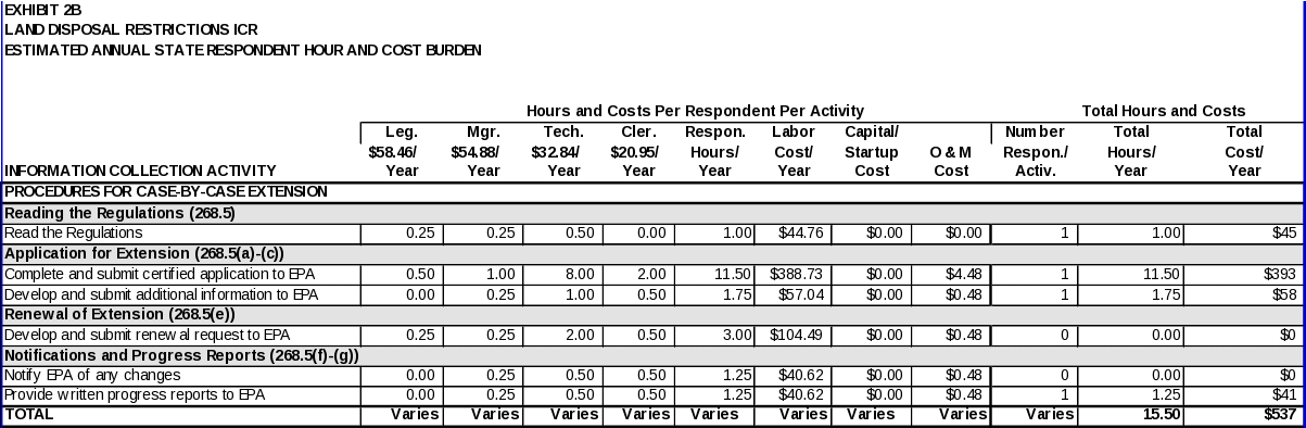 This Information Collection Request (ICR) is entitled “Land Disposal Restrictions,” EPA ICR Number 1442.21. This renewal incorporates the ICR entitled “Land Disposal Restrictions ‘No-Migration’ Variances,” EPA ICR Number 1353.09, OMB Control Number 2050-0062. The reason for integrating these two ICRs is that the no-migration variance is a small part of the larger Land Disposal Restrictions program.
