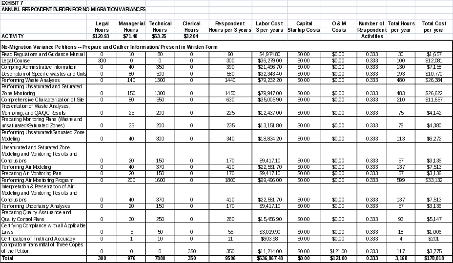 (7) Recordkeeping for No-Migration Variances (Exhibit 7)