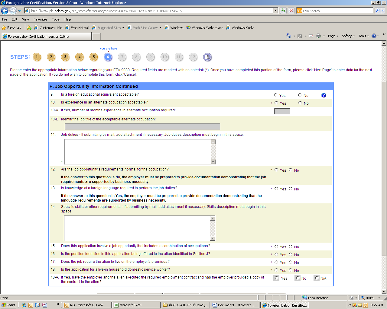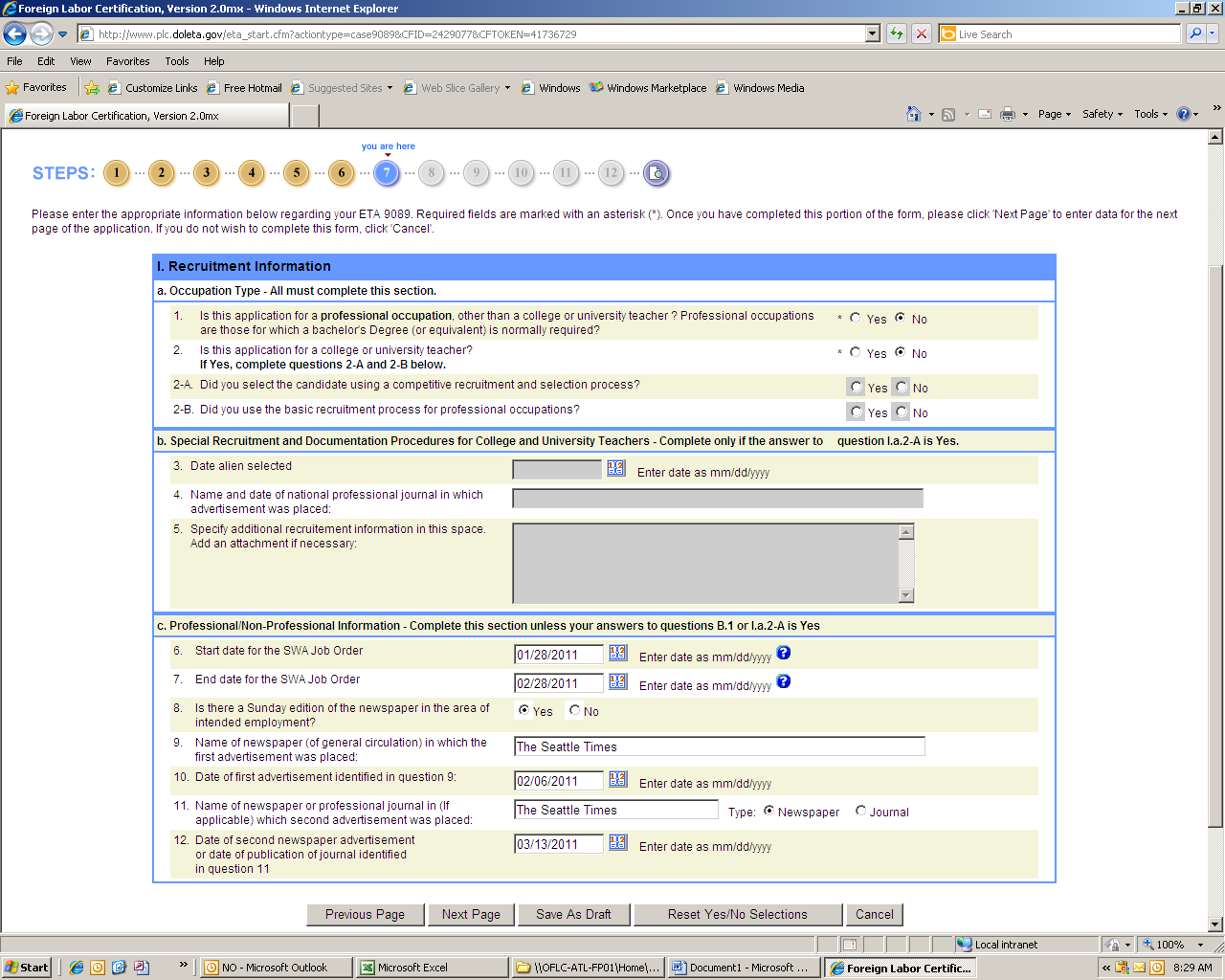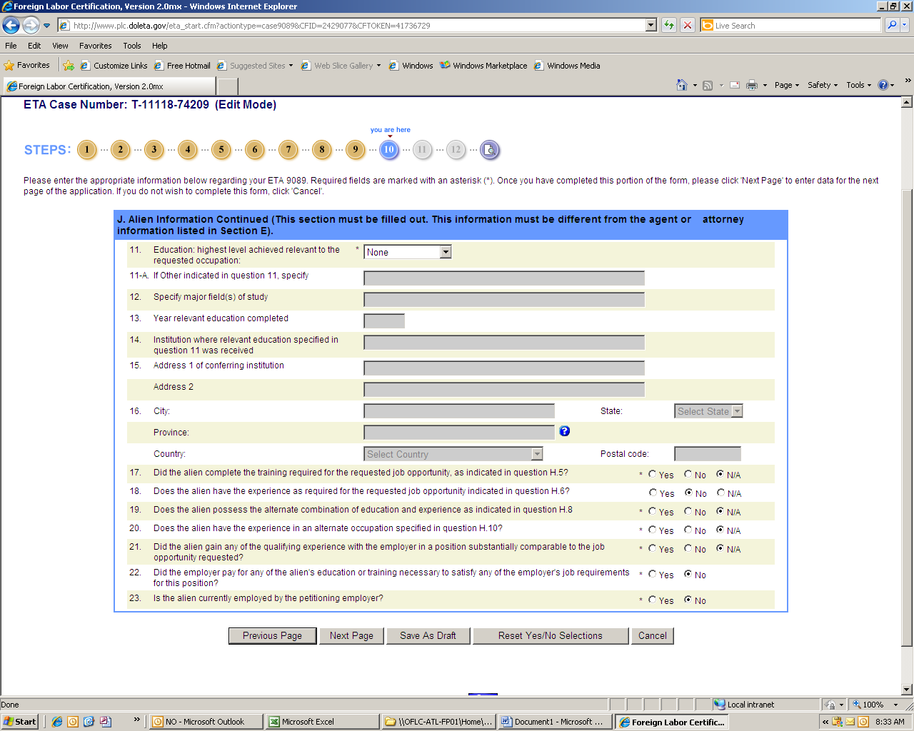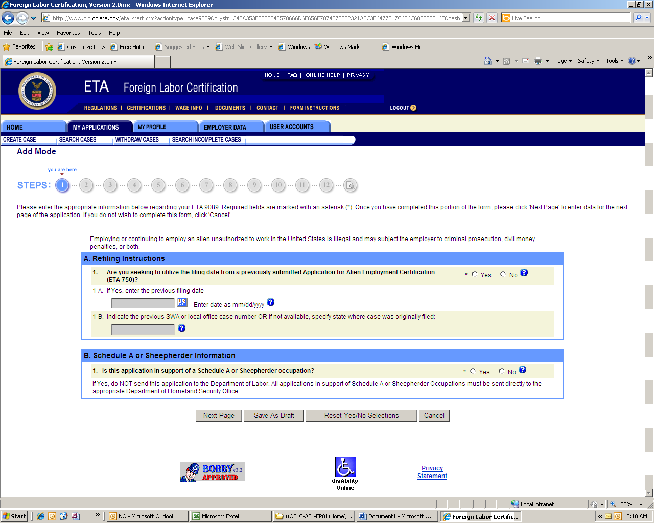 ETA 9089 Application for Permanent Foreign Labor Certification