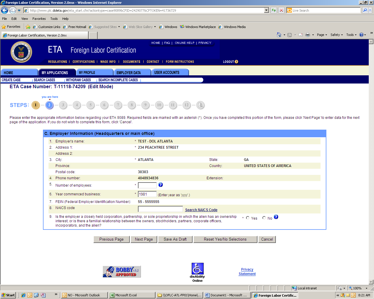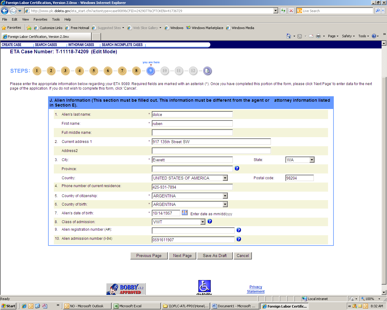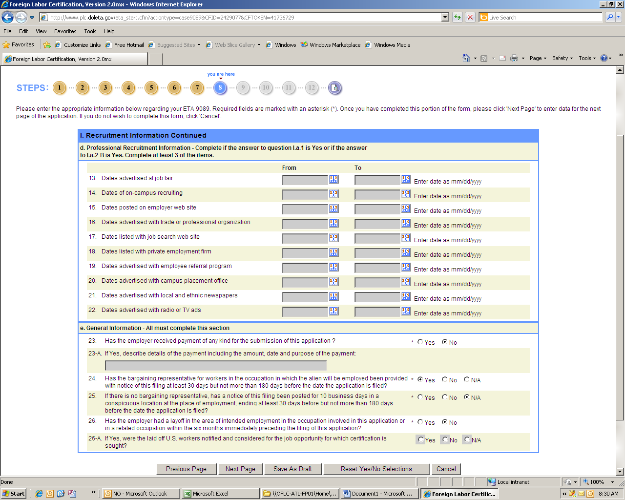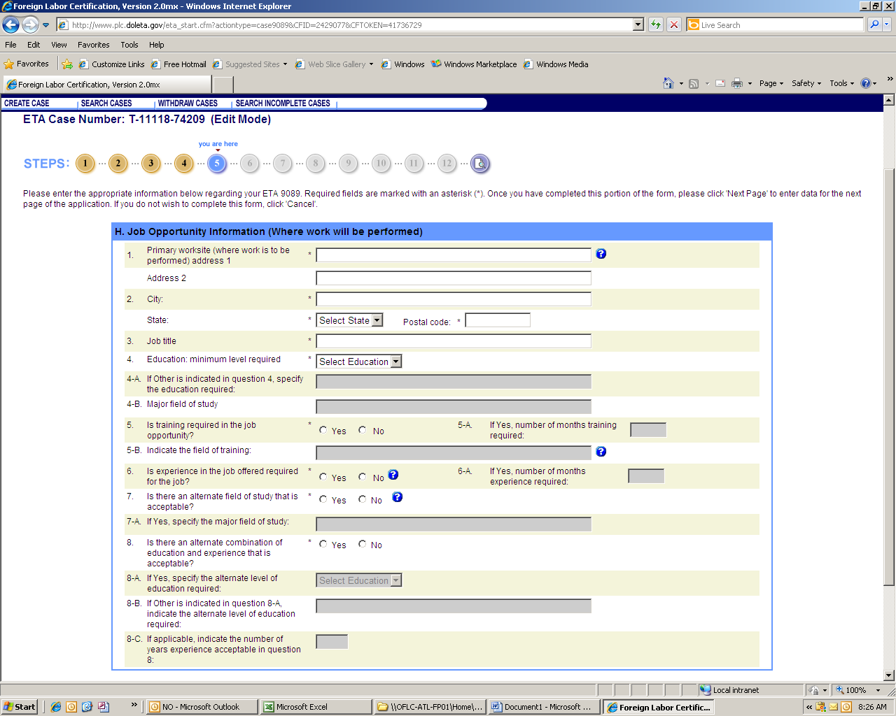 ETA 9089 Application for Permanent Foreign Labor Certification