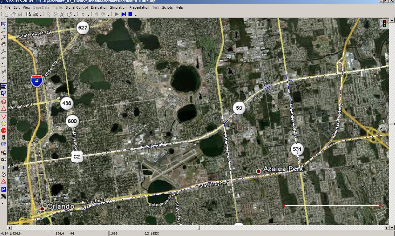 (These instructions and the tasks will take less than 40 minutes). Like you did in the previous session, now you will be asked to make route choices in a simulated traffic environment. The simulation is from the same commuter route in ___________. Cars are driving in an east-west direction for 5 miles towards downtown Orlando using either _______ or _________________. Here is a map of these two routes as it is shown in the simulation: