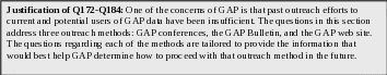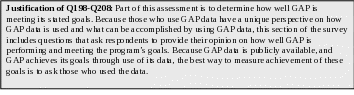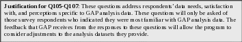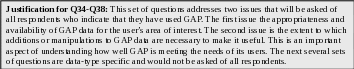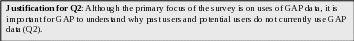 The first section of questions addresses your use of GAP data