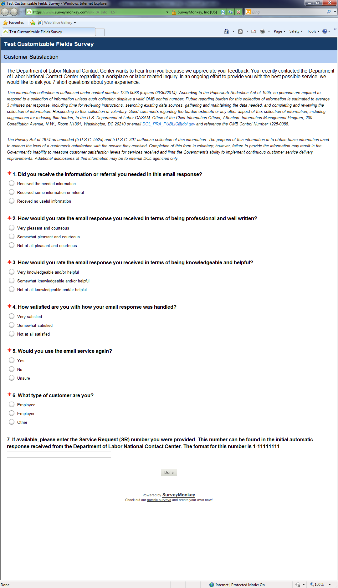 *Please note that the indication for the US DOL office/agency changes depending on which agency the customer contacted.