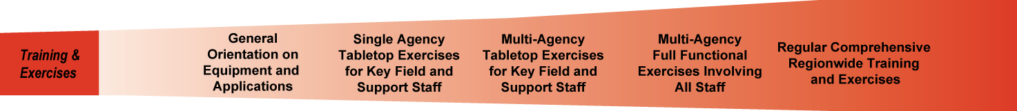Some public safety agencies within the area hold communications interoperability training on equipment and conduct exercises, although not on a regular cycle. |
