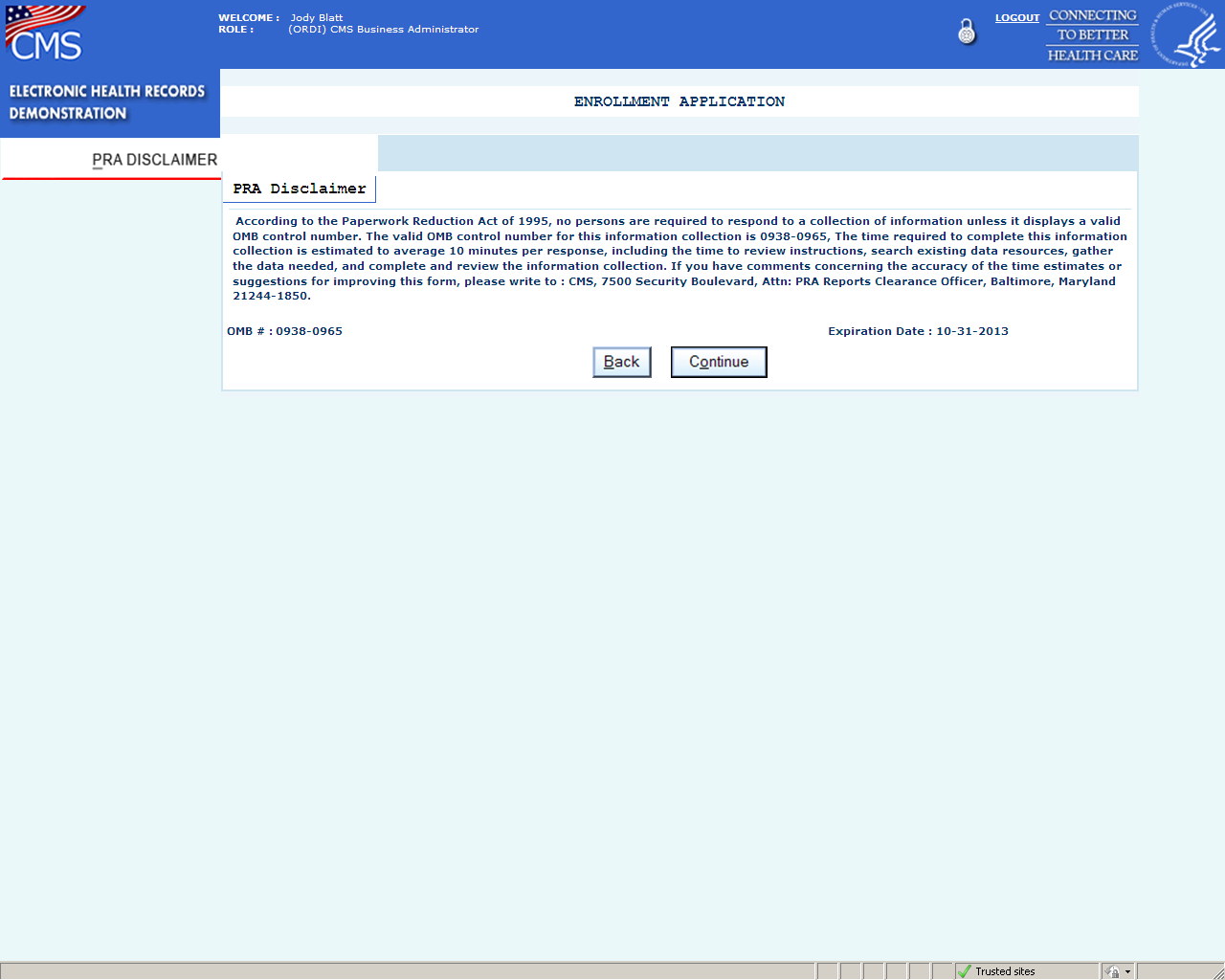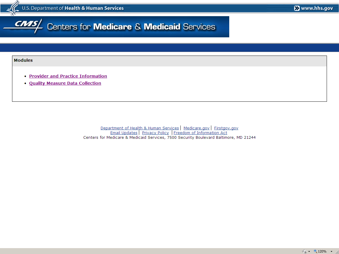 There are two modules to the EHR Demonstration System. The first one implemented was to Collect Provider and Practice Information (OMB #0938-0965). The Quality Measure Data Collection is the second module.
