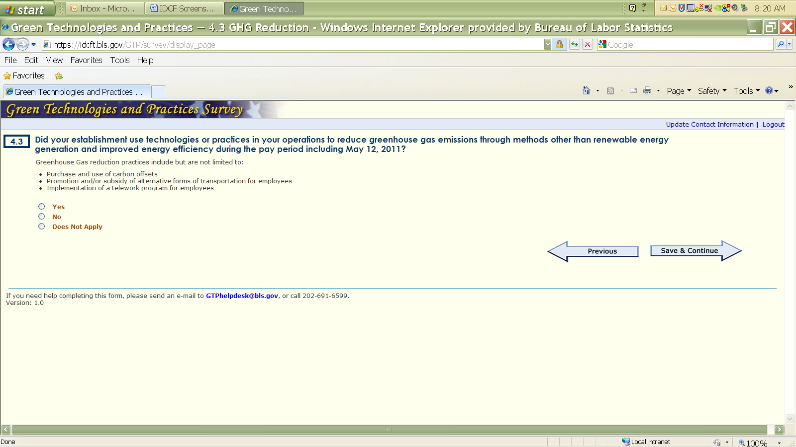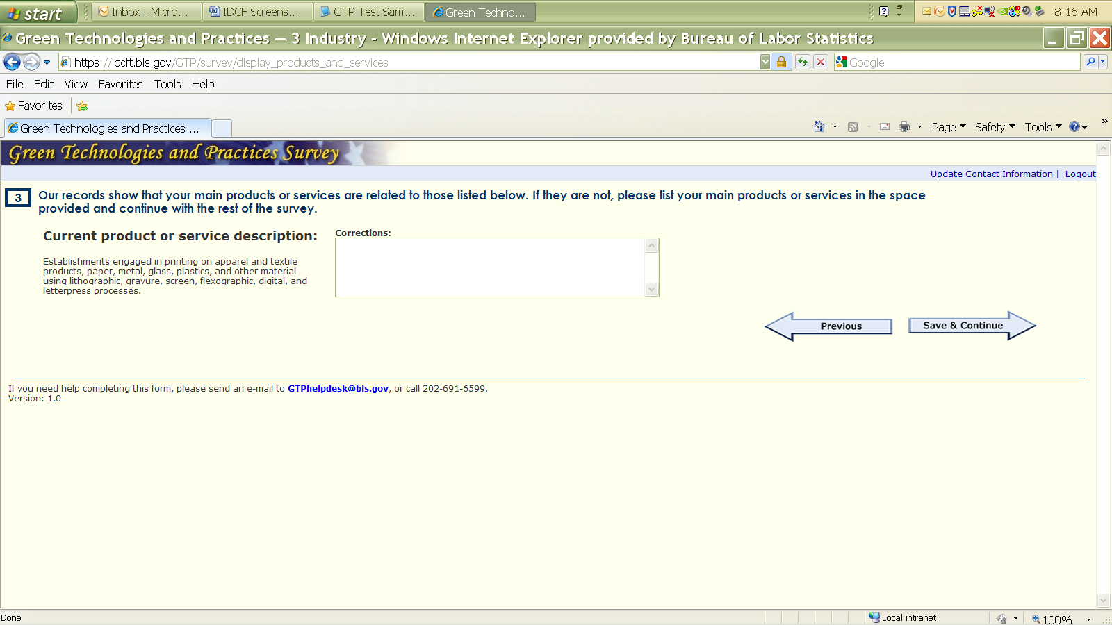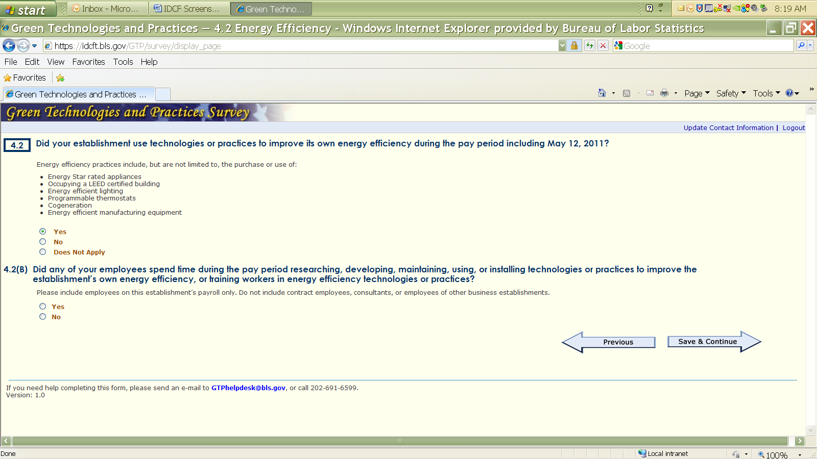 BLS OES Green Jobs BLS OES Green Jobs Internet Data Collection Facility Scr