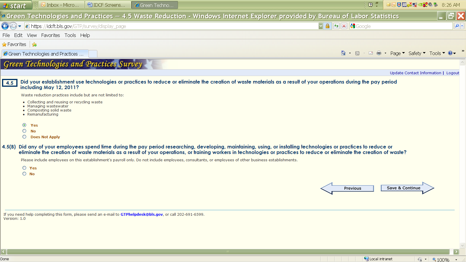 Occupational Employment Survey Forms Design and Pilot Testing for the BLS Green Practices and Processes Project
