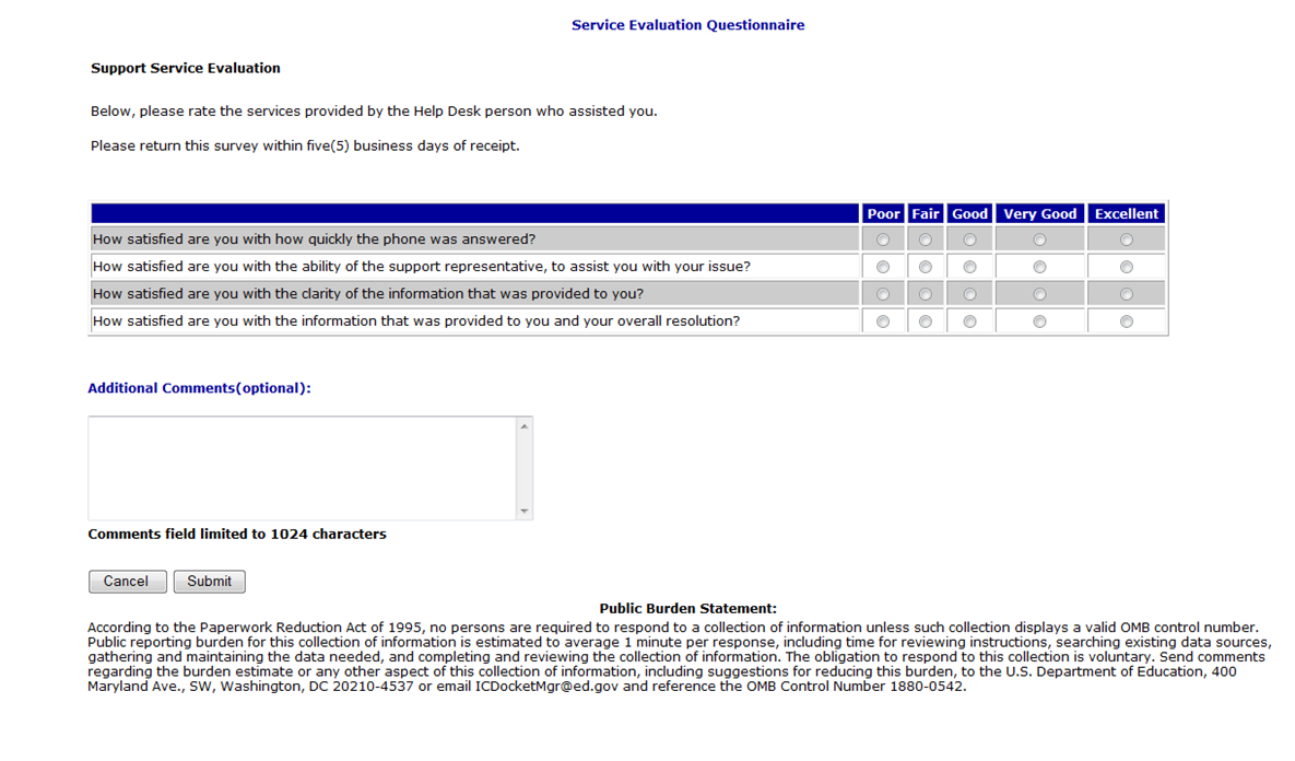 EDCAPS Service Evaluation Questionnaire (1880-0542 SV)