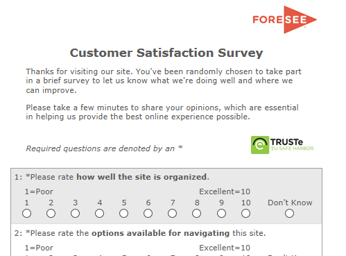 | Model questions utilize the ForeSee CXA methodology to determine scores and impacts | |||||||||