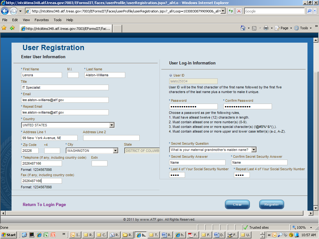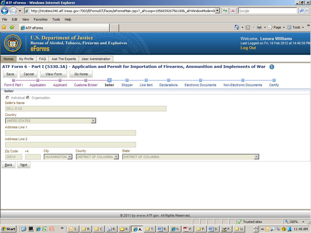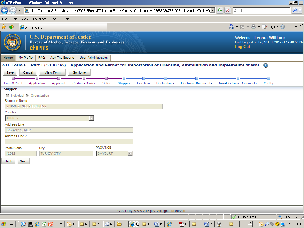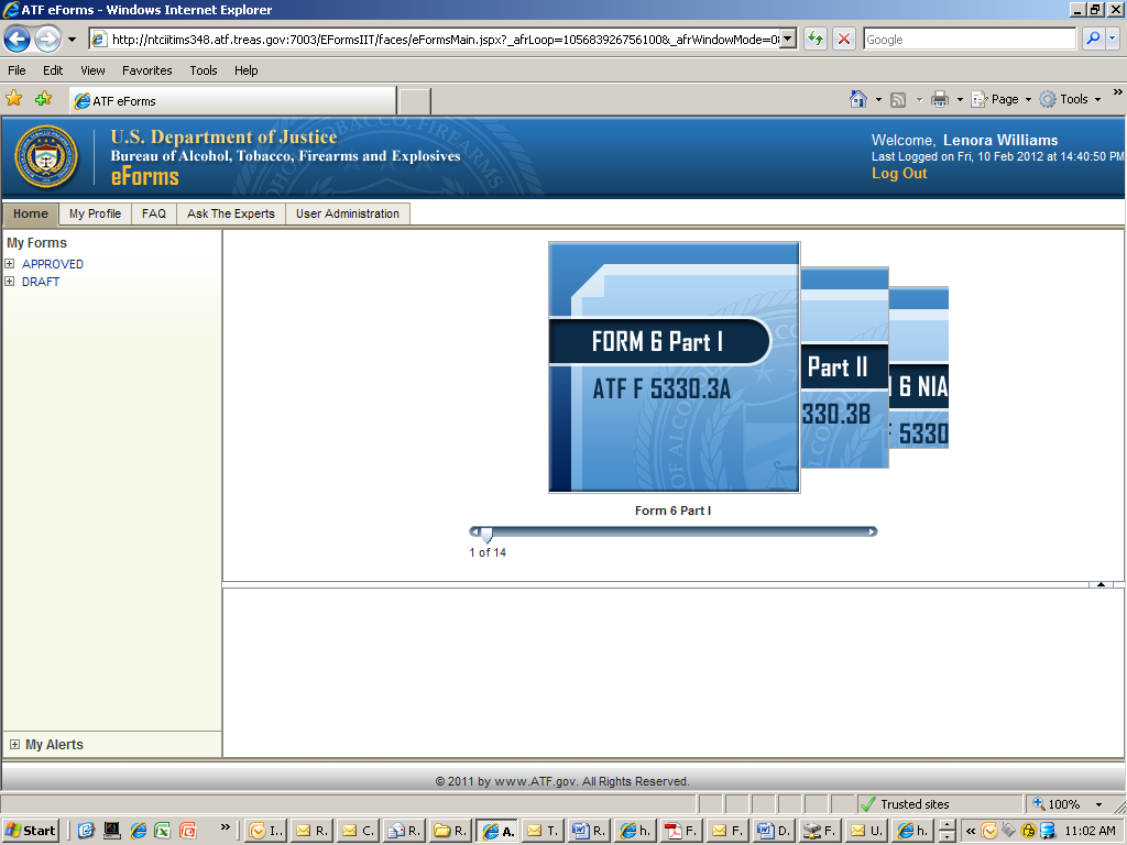 Once the user selects the form from the carousel they begin to complete a series of screen based on the forms that they have selected. Once the pages have been completed the applicant will submit the form electronically to ATF. The system will generate a completed pdf of the OMB approved form that was selected.