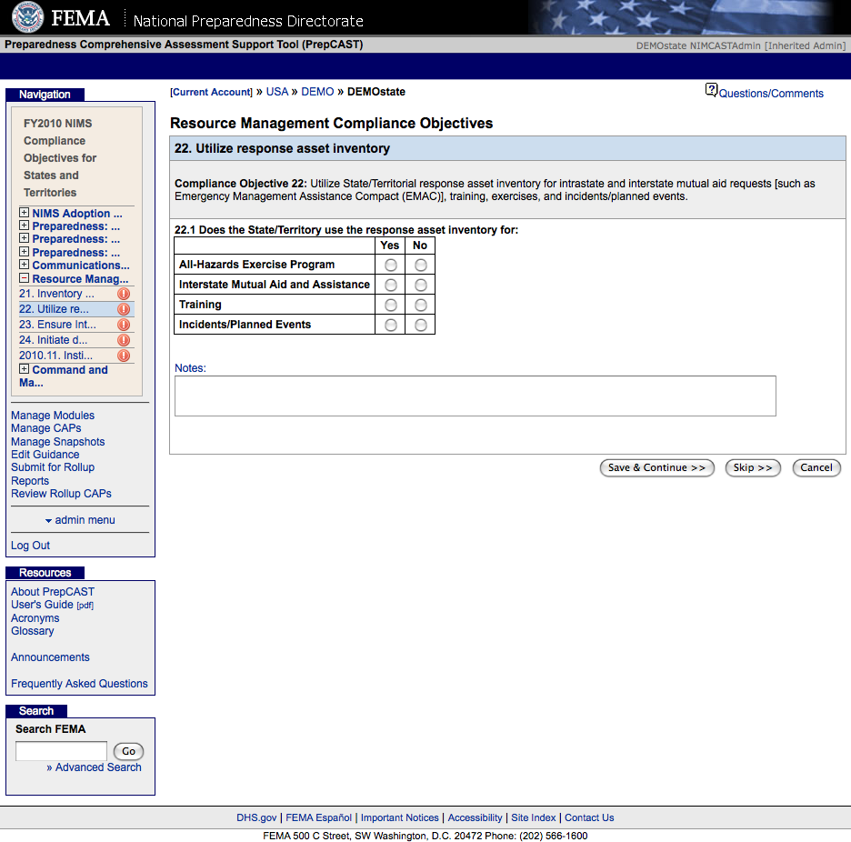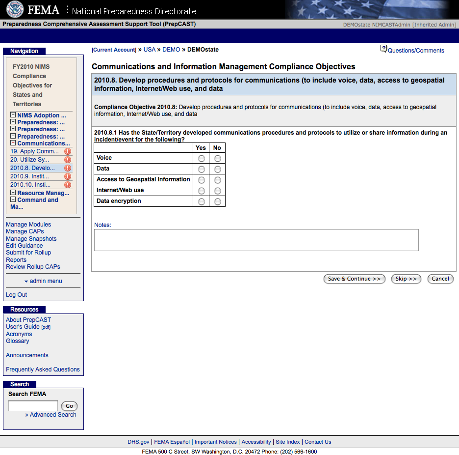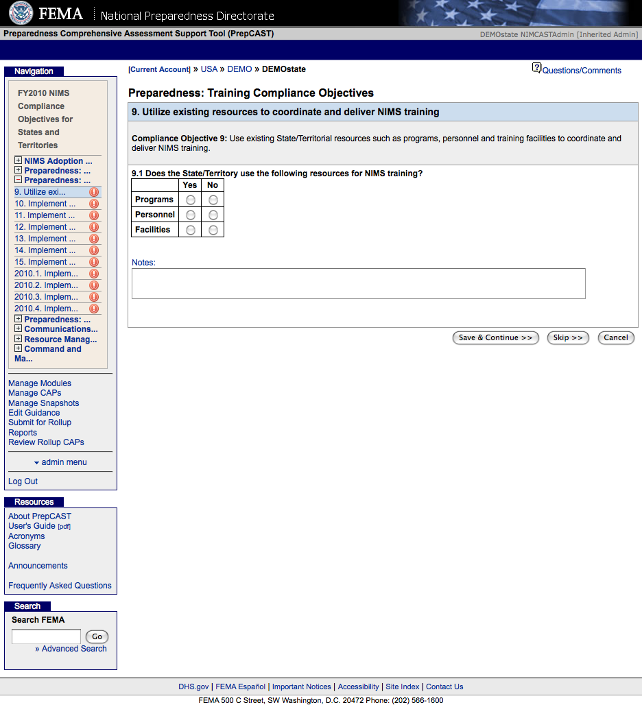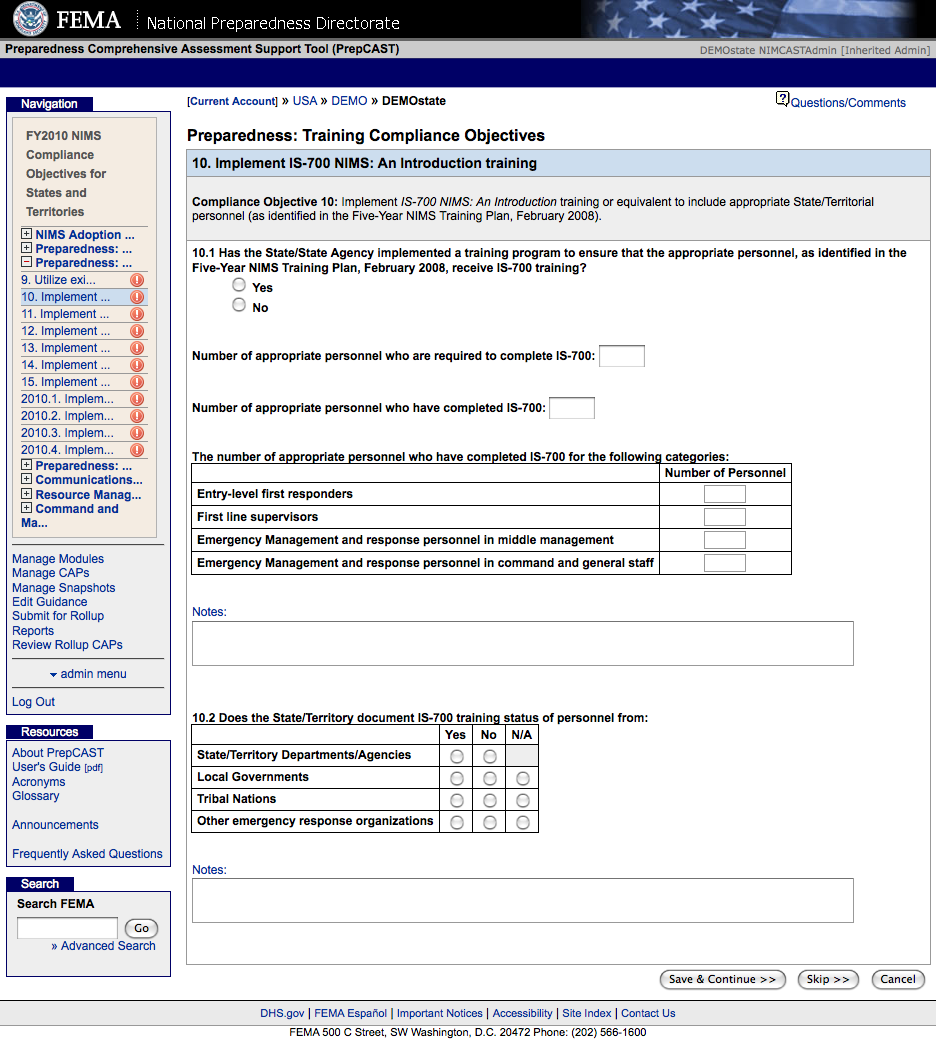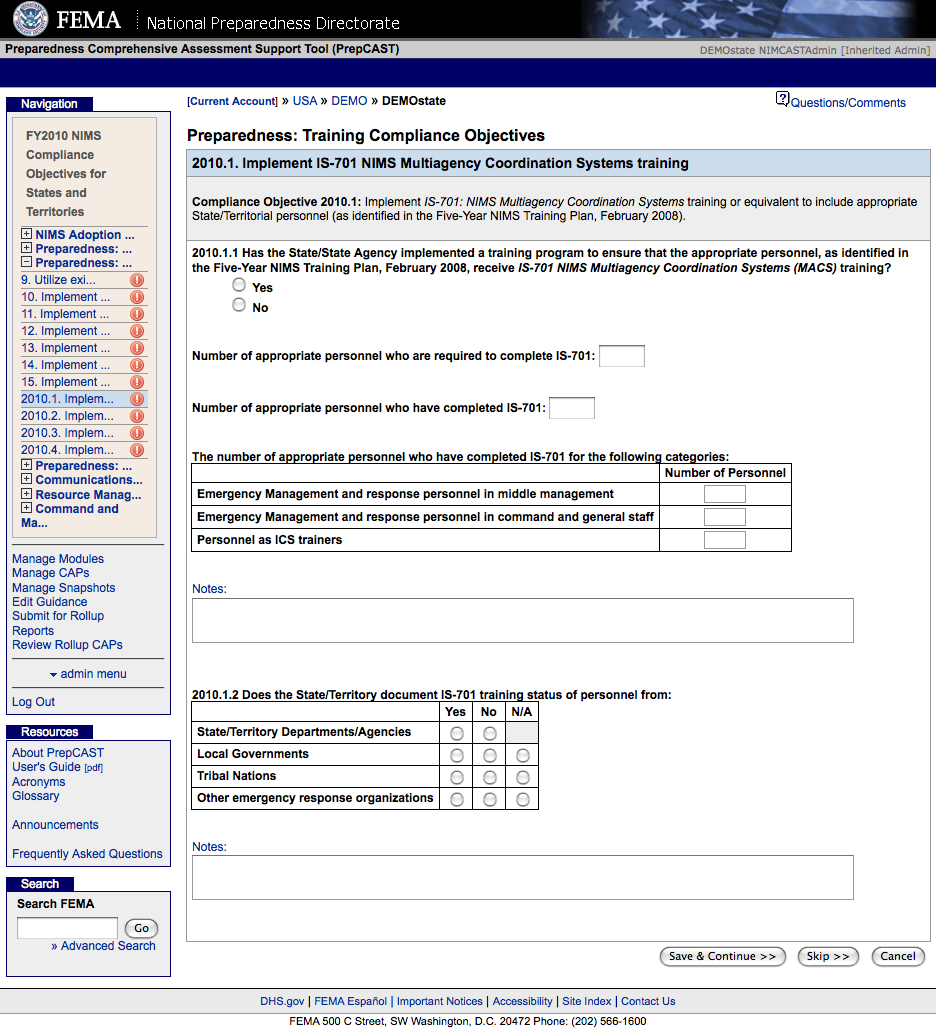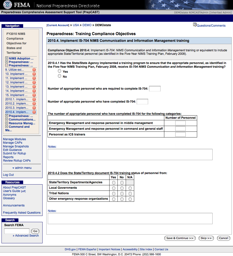 National Incident Management System Compliance Assistance Support Tool (NIMSCAST)