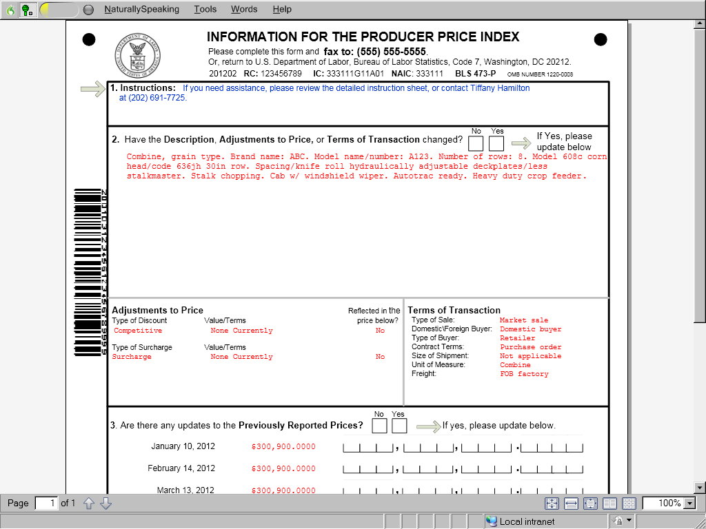 We will send you several simulated forms to complete, along with scenarios that provide the information to complete the forms. The items/services in the forms will be similar to what you already price for us. However, the scenarios may or may not match actual situations in your business.
