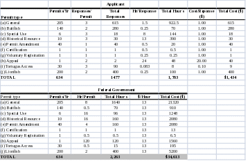 The cost to the Federal government for each of the permit types is listed in the attached table. All costs are for the staff time required to process permit applications and any associated reports.