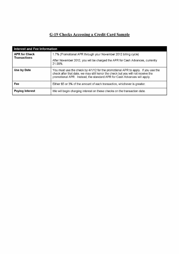 G-19 Checks Accessing a Credit Card Account Sample (§ 1026.9(b)(3))
